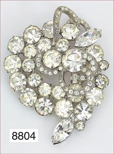 Große Strass-Brosche, signiert WEISS (USA), 50er Jahre, klarer Strassbesatz in unterschiedlichen Formen, gefasste Steine,47,5 x 61 mm