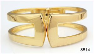 Golfarbene Armspange von Christian Dior (signiert mit Dior Germany und Jahreszahl 1973), schlichte, elegante Ausführung im Stil der 70er Jahre, Innenmaß: 59,5 x 47 mm