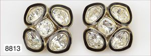 Große goldfarbene Ohrclips von Christian Dior (signiert), je 5 geschliffene klare Strasssteine umrandet mit schwarzer Emaille, D = 31,5 mm