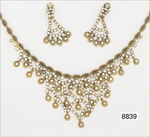 Lot: Collier u. Ohrhänger, Metall vergoldet, Glas, 40,5 cm, Verlängerungskette 5,5 cm, Clip-Hänger ca 5 cm