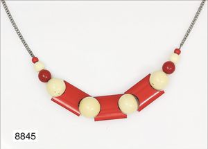 Kette, ART DECO, Metall, Kunstoff, rot u. elfenbeinfarben, ca 44,0 cm
