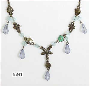 Glas-Kette u. Metall Elemente, Mitte 20.Jhd., endlos, L = 138 cm