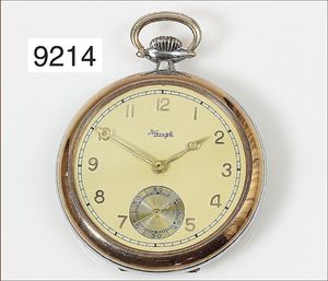 Herrentaschenuhr, KIENZLE, 50er Jahre, arab. Zahlen, kl. Sek. auf 6 Uhr, D = 50 mm, sehr gut erhalten aber Uhr läuft nicht