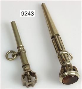 Lot: 2 x Taschenuhrenschlüssel, 1 x Metall mit Ratsche, 1 x Metall mit Schmuckstein