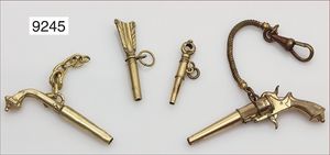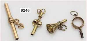 Lot: 4 Taschenuhrenschlüssel, 4 x Metall vergoldet