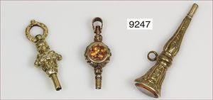 Lot: 3 Gold-Taschenuhrenschlüssel, 1 x 585/000 mit Ratsche, 1 x 750/000 )Frankreich) mit Ratsche, 1 x 750/000 mit Niello