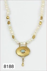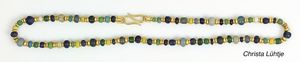 Kette, CHRISTA LÜHTJE, München 1987, Feingold u. GG 900/000, islamische u. römische Glasperlen, S-Haken Verschluß, 117,5 cm