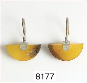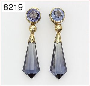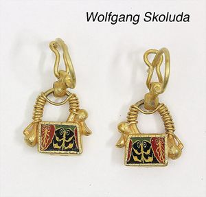 Ohrhänger, WOLFGANG SKOLUDA, Hamburg, GG 900/000, antike, wohl römische Glasfayencen, sehr feines Mosaik, H = 28 mm