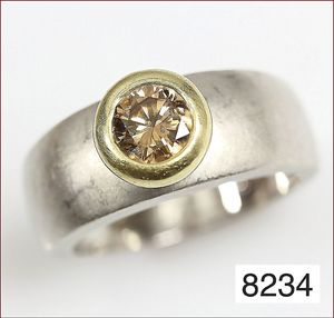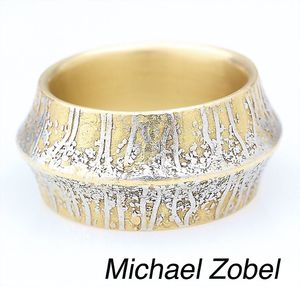 Ring, MICHAEL ZOBEL, Konstanz, GG 750/000 und Platin ?, dachförmiger Aufbau, geätzte Goldstruktur, B = 11,8 mm, RW ca.56, total 13 g