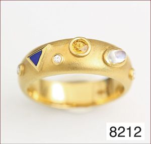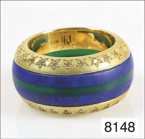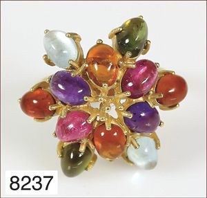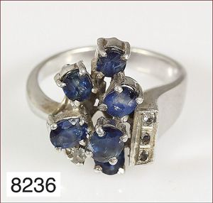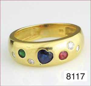 Ring, GG 750/000, Rubin, Saphir u. Smaragd (alle Steine facettiert), Brillanten ca. 0,11 ct, weiß, RW ca. 48,5