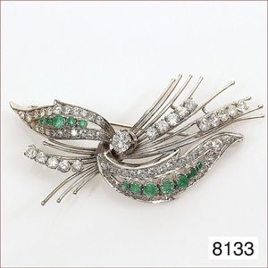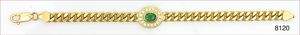 Panzer-Armband, GG 585/000, Smaragd ca. 3 ct, Brillanten ca. 0,64 ct tw-lupenrein, L = 18,8 cm, total 28 g Expertise von 2.4.94 über DM 3800,-