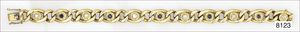 Goldarmband, GG 585/000, 6 Brillanten ca. 0,6 ct w-si/p, 5 Saphire ca. 0,7 ct, mit Kastenschloß und zwei Sicherheitsachtern, L = 20,5 cm, total ca. 46,8 g, schwer gearbeitetes Band