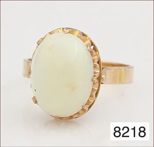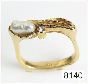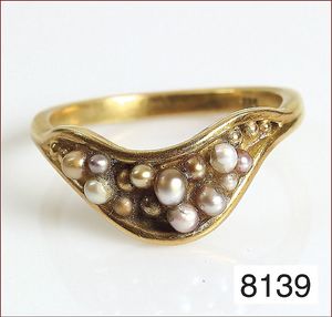 Ring um 1870/80, GG 585/000, Muschelgemme mit 4 St. 1/2 Perlen (abgetragen), RW ca. 54