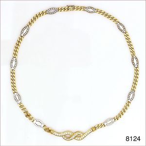 Panzerketten-Collier, GG/WG 750/000, 132 Brillanten ca. 2,16 ct tw-vvsi, im vorderen Mittelteil sowie auf Kettenelementen verteilt, Kastenschloß mit Sicherheitsachter, L = 42,5 cm, total 46,4 g