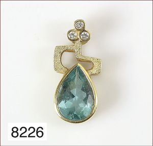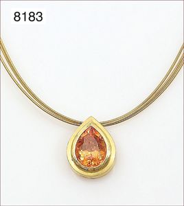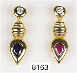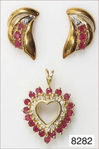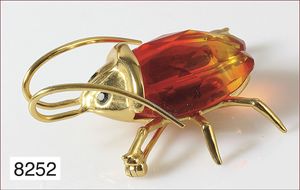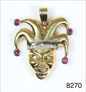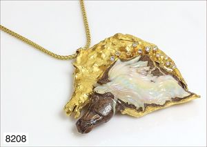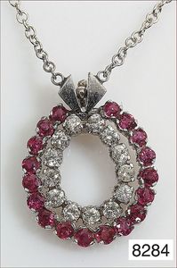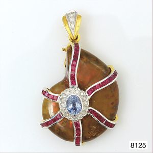 Anhänger, WG/GG 750/000, opalisierende Ammonit-Schnecke , 19 Diamanten ca. 0,25 ct, 45 Rubine ca. 2,5 ct, 1 Ceylon-Saphir ca. 1,15 ct, H = 45 mm ...hat nicht jeder !!