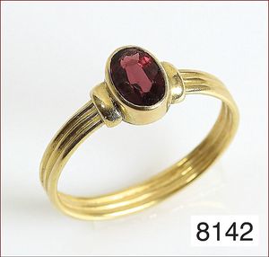 Lot: Granatschmuck, 1 x GG 333/000 Stecker mit Granat-Tropfen H = 15 mm ; 1 x Ring GG 333/000,Granate, RW ca. 55; Armband Ag 925/000 vergoldet, Granate, L = 19,7 cm; Collier, Ag verg., Granate, L = 42,5 cm
