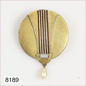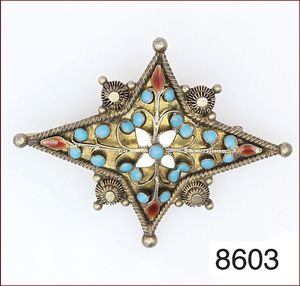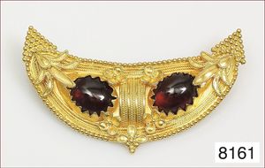 Brosche, Silber 830/000, vergoldet, farbige Glaspaste, 1. Hälfte 20.Jhdt., Süd-Osteuropa