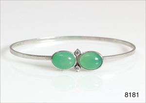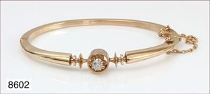 Armreif, RG 585/000, Süddeutsch um 1890, Meisterpunze, Altschliff-Diamant, ca. 0,25 ct, Kastenschloß mit Sicherheitskettchen, Innen 57,5 x 50,0 mm