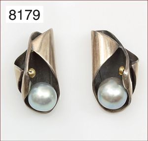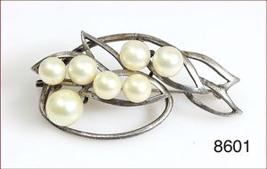 Perlbrosche, Silber, ca. 45 x 24 mm