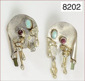 Clips (mit Stift), MICHAELA KIRCHNER, Heidelberg 80. Jahre, GG 750/000, Korallen, D = 15,5 mm