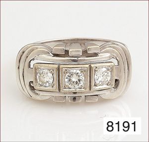Ring, GG 585/000, 3 Brillanten ca. 0,70 ct weiß-p, (mittlere Stein ca. 0,35ct), RW ca.61, total 11,2 g