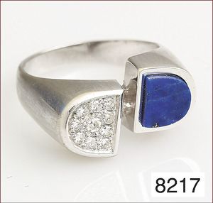 Ring, JUGENDSTIL um 1900, Platin 950/000, 2 Opale mit schönem Farbspiel, 12 Diamanten, RW ca. 60,5