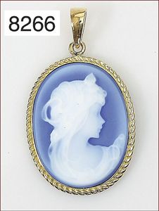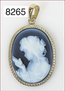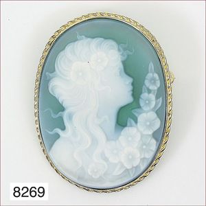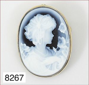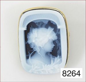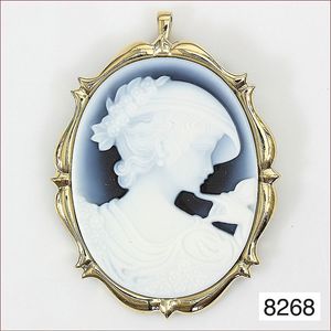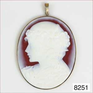 Anhänger / Brosche, Metall vergoldet, Muschelgemme, ca. 30 x 39 mm