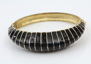 Goldfarbene Armspange von Kenneth Jay Lane (signiert KJL) mit schwarzer Emaille-Auflage. D innen = 57,5 x 46,5 mm