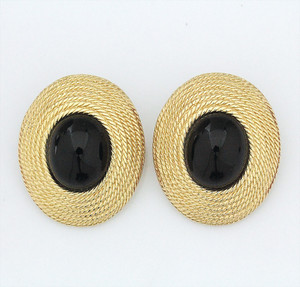 Imposante, ovale Ohrclips von Ciner, USA (signiert). Goldfarben. In der Mitte jeweils ein großer, schwarzer Glascabochon. H = 37 mm