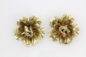 Goldfarbene Blütenclips von Coro (signiert). Plastische Ausführung. Mattes Metall mit „ausgefransten“, glänzenden Rändern. D = 34 mm
