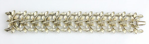Hell goldfarbenes Blätter-Armband von Lisner (signiert). Breite Ausführung. Schöne plastisch-detaillierte Arbeit, L = ca, 17,5 cm