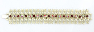 Goldfarbenes Armband von LISNER (signiert). Bewegliche Glieder mit roten, schimmernden Strassteinen (abwechselnd bedampft). L = 18,0 cm