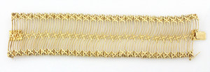 Breites, goldfarbenes Armband. Glänzende Oberfläche, durchbrochene, gewellte Form. Signiert Grosse 1961 (Henkel & Grosse Pforzheim). L = 17 cm