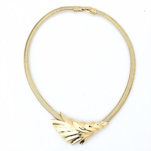 Halsnahes, goldfarbenes Collier von TRIFARI, USA (signiert). Schlangenkette mit glänzendem Mittelteil. L = 47 cm