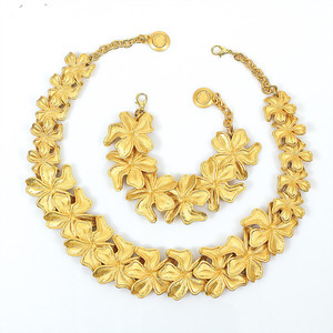 Set: Collier und Armband. Mehrfach signiert mit Venturina Paris. Mattes, goldfarbenes Metall mit Gliedern in plastischer Blätter-Form. Massive Ausführung. L = ca. 49 cm / 20 cm