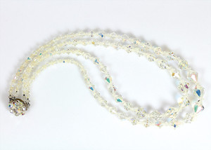 Glas-Kette, Metall, doppelreihig, leicht opalisierendes Glas, Kette im Verlauf, L = 60 cm