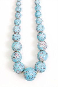 Verlaufskette, blaues Glas (Türkisimitation), Mitte 20.Jhd., Drehschließe Metall, L = ca. 42 cm, (Luft vom Faden nicht mitgerechnet)