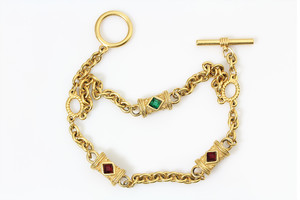 Armband, sig. MONET, vergoldet, doppelreihig, farbige Strasssteine, Knebelverschluß, L = 22 cm
