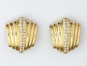 Ohrclips, CHRISTIAN DIOR sig. Chr. Dior C, weißer Steinbesatz, H = 25,5 mm
