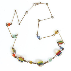 Kette regenbogenfarbige, Metall, farbiges fac. Glas, L = 44,5 cm