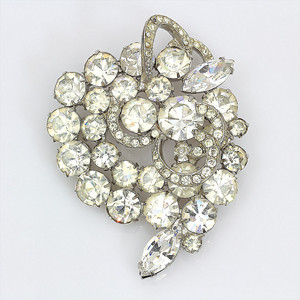 Große Strass-Brosche, signiert WEISS (USA), 50er Jahre, klarer Strassbesatz in unterschiedlichen Formen, gefasste Steine,47,5 x 61 mm
