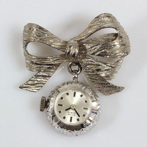 Brosche mit Uhr, Metall, Handaufzug,ca 36 x 39,5 mm, Uhr läuft