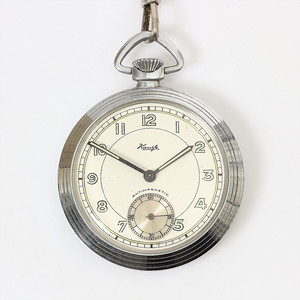 Herrentaschenuhr 40er Jahre, Z.B. arab. Zahlen, kl. Sekunde, Kalib. 46/6b, Ankerhemmung, D = 50,5 mm, Uhrenkette Metall L = 25,5 cm, Uhr läuft