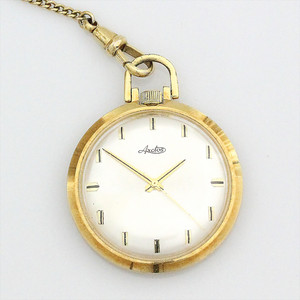 Frackuhr mit Kette, ARCTOS, verg., Strichindex, Zentralsekunde, Handaufzug, D = 26 mm, Uhr läuft