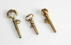 Lot: 3 Gold-Taschenuhrenschlüssel, 1 x GG 585/000 mit Ratsche; 1 x GG 750/000 (Frankreich) mit Ratsche, 1 x GG 750/000 mit Niello