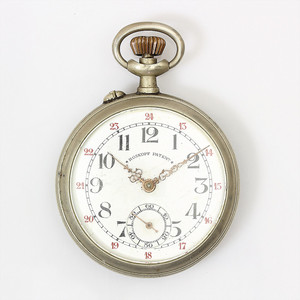Herrentaschenuhr, ROSKOPF PATENT, MEDAILLE DOR 1896, DIPLOM 1906, Stiftanker, Silber, E.Z.Blatt mit arab. Zahlen ( schwarz/rot) u. kl. Sekunde, Uhr läuft, D = 46,5 mm