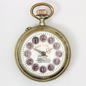 Herrentaschenuhr EISEN mit WECKER, Junghans, helles E.Z.Blatt, schwarz konturierte Zeiger, Weckerzeiger, kl. Sekunde bei 6 Uhr, Handaufzug, Ankerhemmung, Stellhebel für Weck/Still, Wecker und Zeigerstellung mittels Drücker am Schalenrand, um 1930/40, D = 52,5 mm, Zeiger u. Zahlen mit Fehlstellen, Uhr läuft und weckt !!