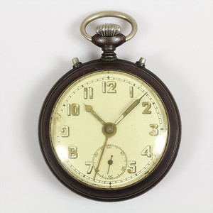 Blindentaschenuhr, ARSA, Metallgehäuse, Stiftanker, E.Z.Blatt mit arab. Zahlen und Punktindex zum Abtasten, D = 51 mm, Uhr läuft, ist aber gut benutzt worden, Sprungdeckel funktioniert nicht einwandfrei !