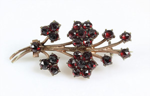 Granatbrosche, 1.Hälfte 20. Jhd., GG 333/000, 8 Granattropfen, 33 runde Granate, D = 32,5 mm