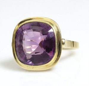 Ring, GG 585/000 (geprüft), Amethyst fac. Antik-Schliff ca. 14,0 ct, RW ca. 56,5